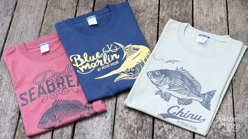 各魚種のイメージに合わせてプリントカラーをボディーカラーをチョイスしました。綿100%で肌触りも良く、さらっと着られます。