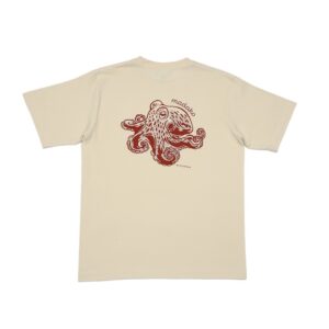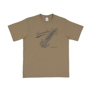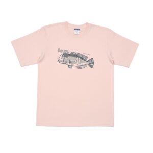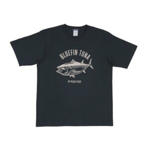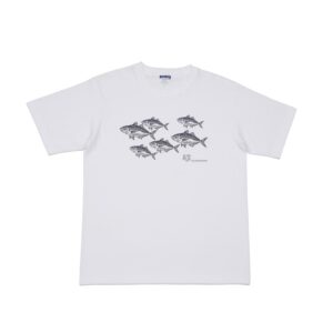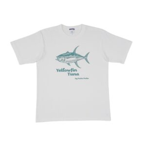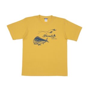 ビビッドなイエローボディに、ルアーを追い かける躍動感あふれる姿を胸元へ配置。1枚 でコーディネートの主役になる存在感に!