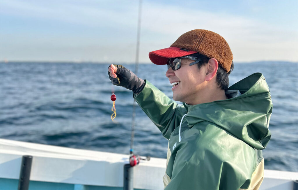 オモリ(ヘッド)、ネクタイ、スカート、フックで構成されたルアーのことで、日本の伝統漁具をルアー化、西日本がルーツと言われています。シンプルな仕掛けで自分自身の好みにセッティングができとてもカラフル。東京湾でもここ数年人気の釣りで、タイラバができる釣船も増えてきました。今回スタッフたちがお世話になったのは、金沢八景野島公園・村本商事さんです。