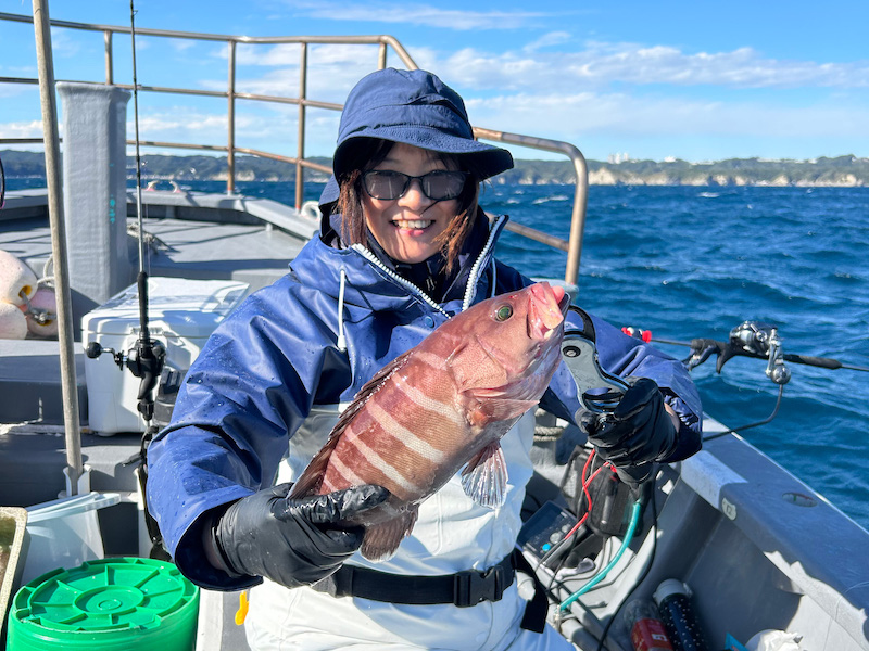 続いてヒットしたのは、アカヤガラ。船に持ち込んだクーラーボックスでは入りきらないような大型のものも上がりました。